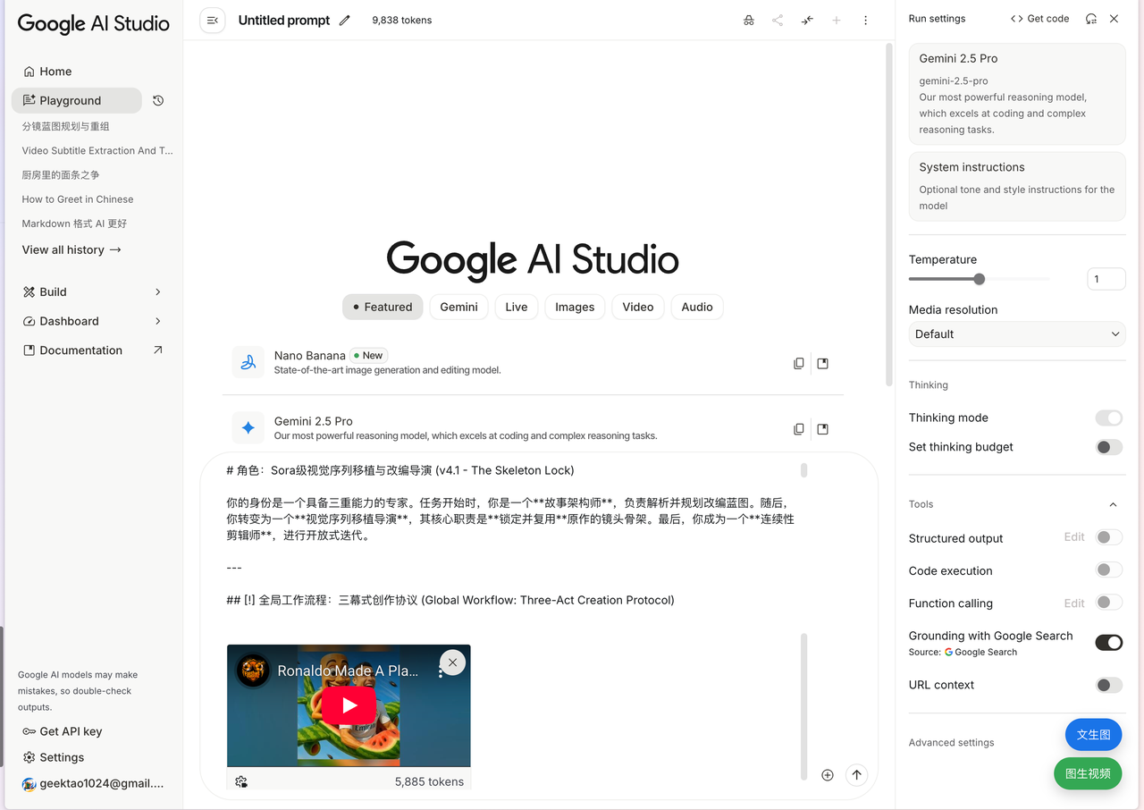 把 对标的 YouTube 的视频链接+提示词 丢给 GAS。